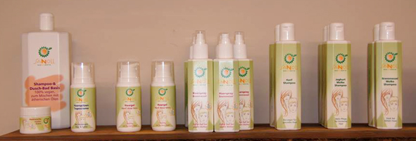 - Shampoos und Haarpflegemittel verwenden wir von Hermanima, Sanoll und Oliebe.